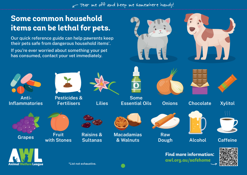 This year, we have a special inclusion that you can tear off and keep somewhere handy - a cute infographic of some common household items that can be lethal for pets.Β